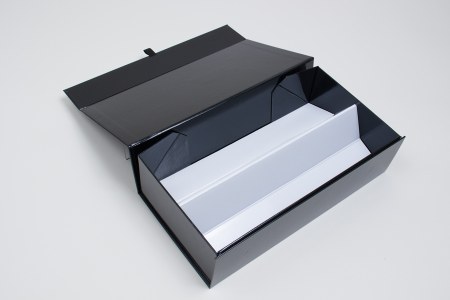 13-1/2 x 7 X 3-1/2" BLACK GLOSS MAGNETIC LID DOUBLE WINE BOTTLE BOX