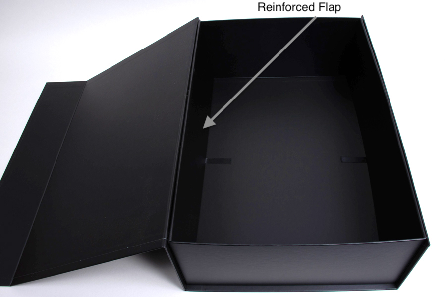 One extra, reinforced flap from our standard six-panel magnetic gift boxes that makes for a sturdier box