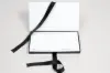 Design: Matte White / Black box with a color-coordinated Black platform, Black grosgrain ribbon, and White insert.