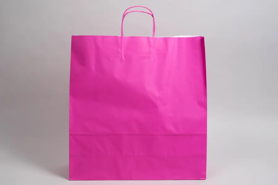 Our bright paper shopping bags come in an assortment of vibrant colors that are sure to catch the eye of your potential customers. They feature handles that are tinted the same color as the bag, and are ideal for carrying takeout, retail purchases, promotional materials, merch, cosmetics, and just about anything else.